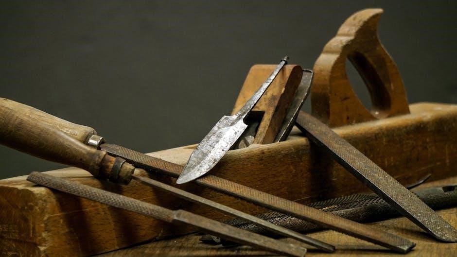 Emphasis is placed on understanding the proper use of each tool, ensuring accuracy and efficiency. The PDF likely includes guidance on maintaining these tools for longevity and consistent results.
